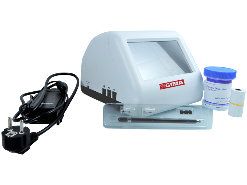 Il lettore professionale GIMA di test droghe esamina digitalmente i bicchierini di urina DOA e fornisce un’analisi completa sullo schermo touch.<