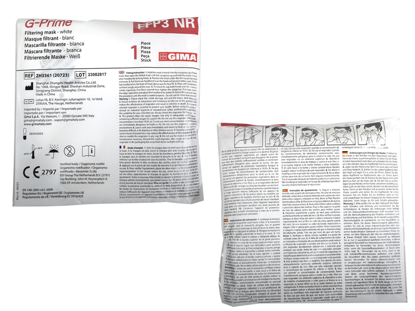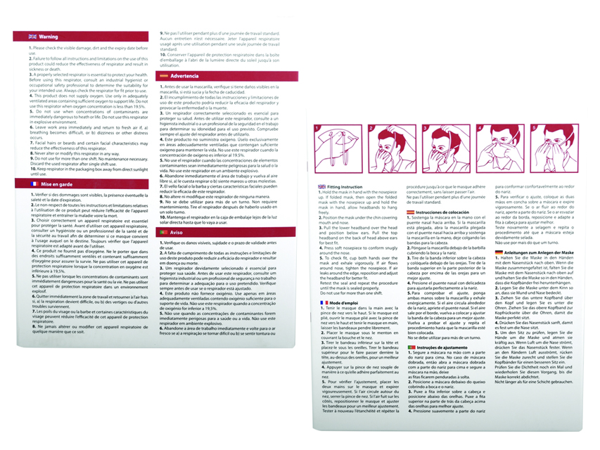 Conformi alla norma europea EN 149:2001 + A1:2009, respiratori facciali filtranti antiparticolato.