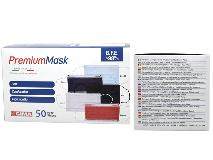 PREMIUM MASCHERINE FILTRANTI 98% 3 VELI – TIPO II CON ELASTICI