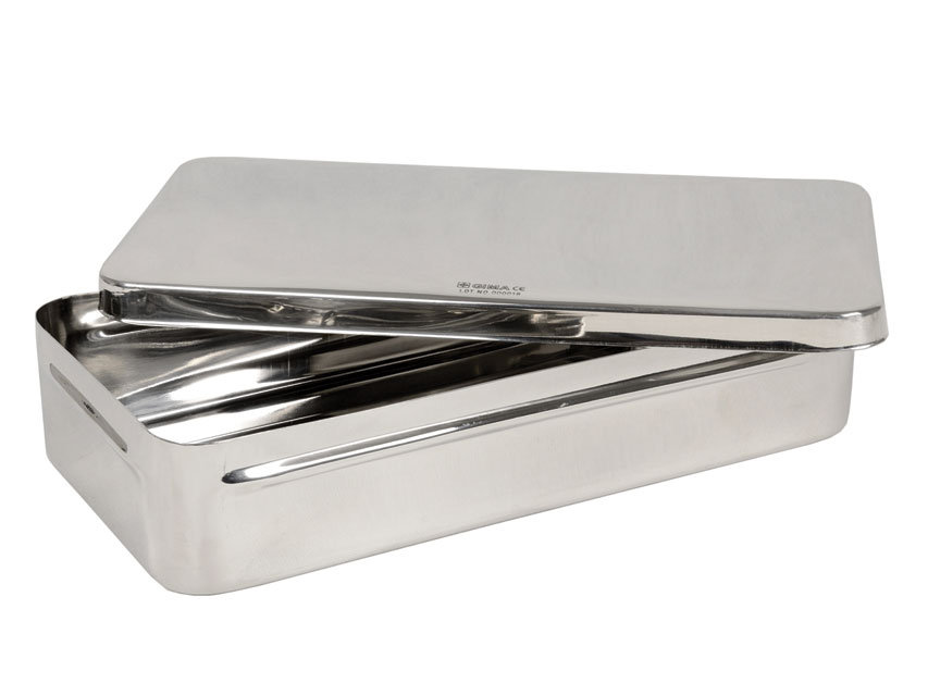 SCATOLA IN ACCIAIO INOX SENZA MANICI.<